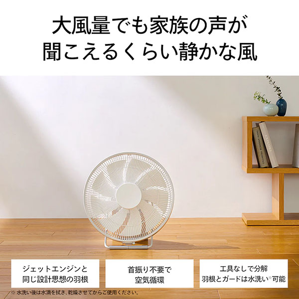 首振り不要でも静音かつ大風量を実現したサーキュレーターです。